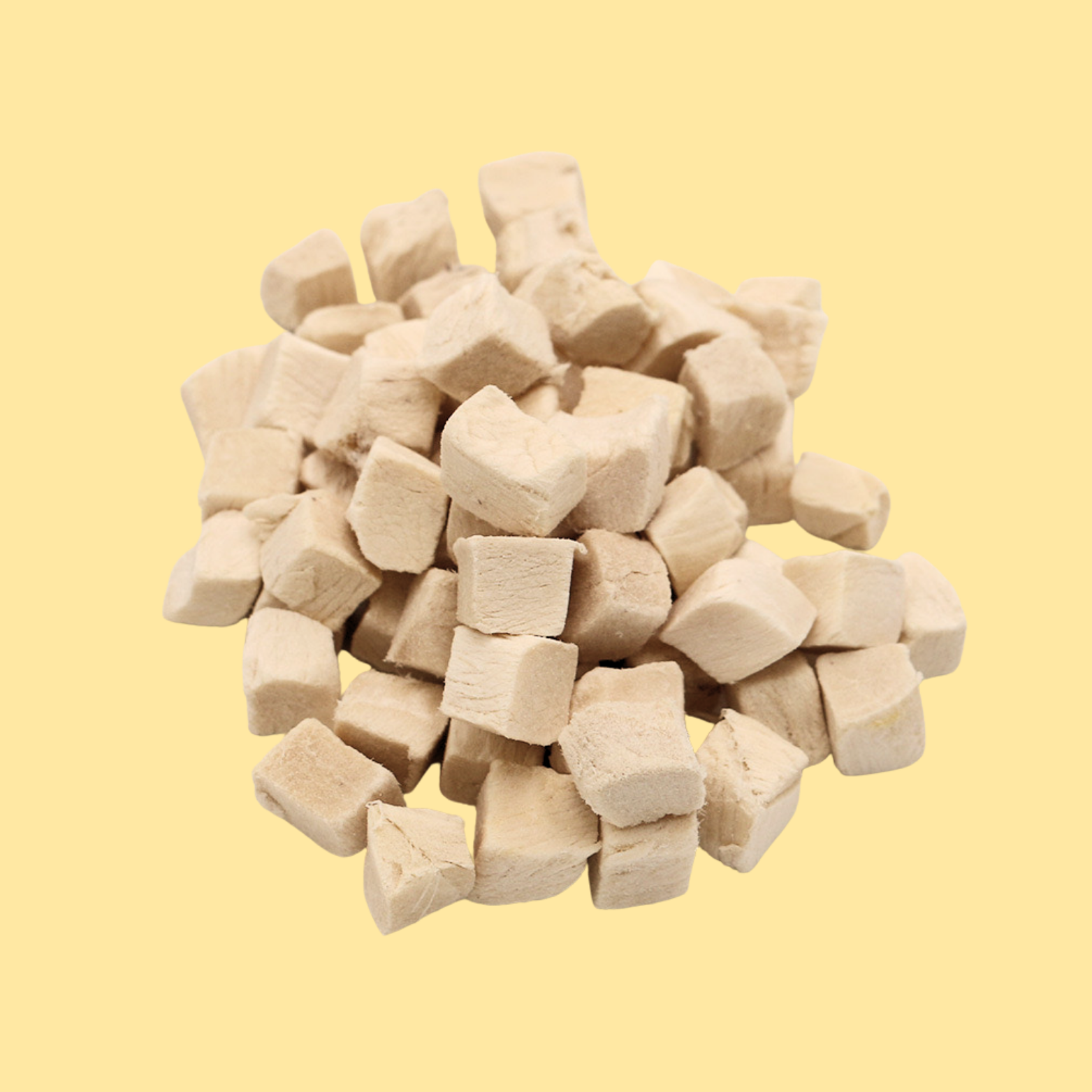 Elaborados con cortes selectos de pollo 100% natural, los cubitos de pollo liofilizado NIONIO son la opción perfecta para consentir a tu peludo amigo con un snack de alto valor y un sabor irresistible. Cada bolsa contiene 50gr de pura proteína liofilizada, que conserva todos los nutrientes y el delicioso sabor que a tus mascotas les encantará.